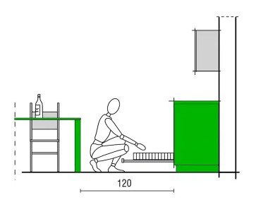 Πρέπει να υπάρχουν τουλάχιστον 100 cm ελεύθερα μπροστά από το πλυντήριο πιάτων ή τον φούρνο για εύκολη φόρτωση και εκφόρτωση. Για να υπάρχει και διάδρομος διέλευσης, απαιτούνται επιπλέον 70 cm στον πλησιέστερο τοίχο.