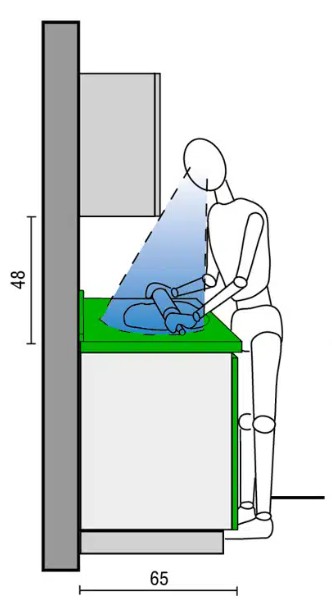 Η μέγιστη απόσταση για τους περισσότερους ανθρώπους θα είναι μεταξύ 180 cm και 205 cm, επομένως τυχόν ντουλάπια ψηλότερα από αυτό θα είναι προσβάσιμα μόνο με σκάλα.