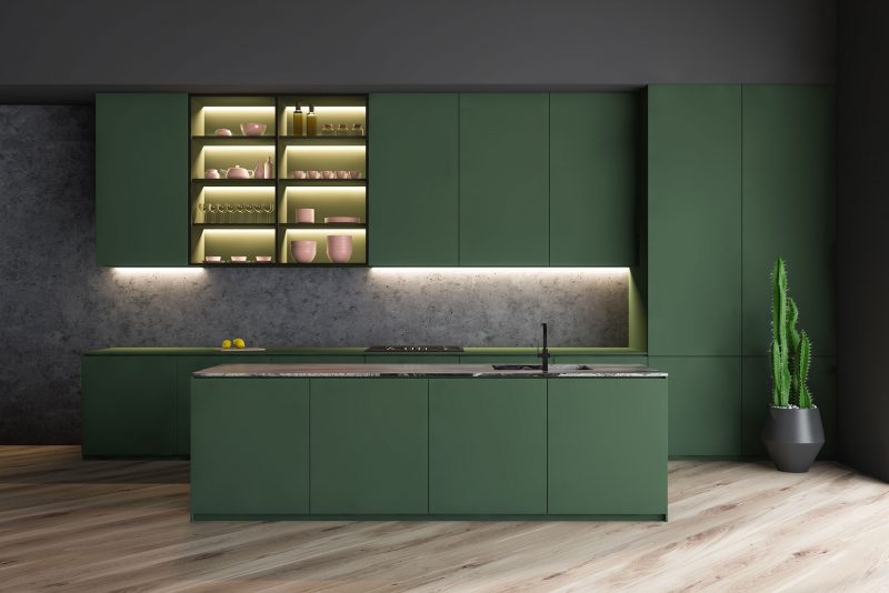 Η μονοχρωμία κυριαρχεί στα έπιπλα κουζίνας  El Castillo. Η ανοιχτή αποθήκευση με τον led φωτισμό προσδίδει μια πινελιά κομψότητας στα έπιπλα κουζίνας, ενώ ταυτόχρονα δίνει ένταση στη μονοχρωμία του πράσινου ματ. Αδιαμφισβήτητα μια κορυφαία επιλογή για τους λάτρεις της απλότητας και της μονοχρωμίας στο χώρο τους.